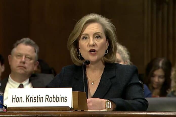 Minnesota state Rep. Kristin Robbins on Feb. 4 told U.S. senators that her embattled state and others need help with fraud-fighting efforts.
